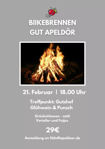 Und auch im Gutshof war es nicht langweilig: Krimidinner (ausgebucht), Tapasabend (ausgebucht), Küchenparty (ausgebucht), Tanzkurs (ausgebucht), Valentins-Dinner (ausgebucht) und schon am 21. Februar ein weiteres Highlight: das Biike-Brennen.